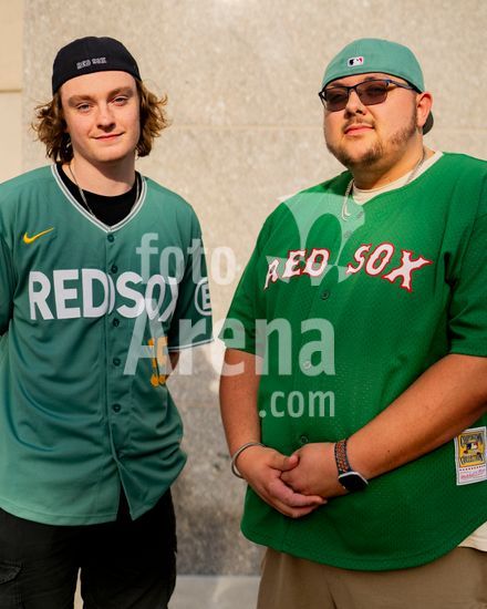 ny011025152711 Will Ross and Ian Inangelo, who traveled to the game in the Bronx from Worcester, Mass., Sept. 30, 2025. Thousands of Red Sox fans invaded the citadel of New York baseball last night, but not by storming the ramparts or charging through the gates. They did it casually, strolling inside with tickets purchased legally online, despite concerns that they would be denied entry to Yankee Stadium based on their residency and allegiance. (Elias Williams/The New York Times/Fotoarena)