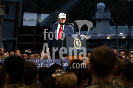 ny281025211012 President Donald Trump addresses military personnel on the USS George Washington in Yokosuka, Japan, on Tuesday, Oct. 28, 2025. North Korea has yet to respond to President TrumpÕs repeated offers to meet its leader, Kim Jong-un Ñ instead, it fired missiles off its west coat, the countryÕs state media reported on Wednesday. (Haiyun Jiang/The New York Times/Fotoarena)