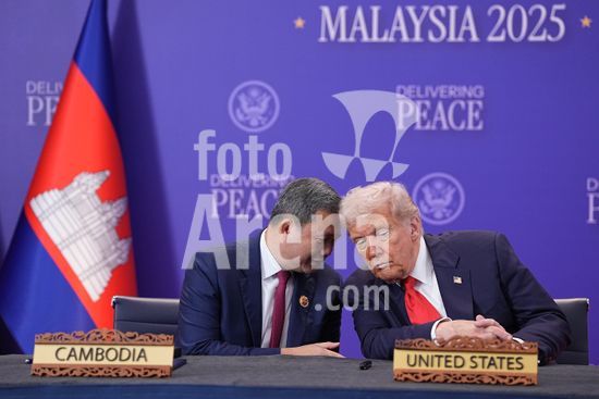 ny261025124512 Cambodian Prime Minister Hun Manet speaks with President Donald Trump during a signing of a ceasefire agreement between Thailand and Cambodia at the ASEAN Summit in Kuala Lumpur, Malaysia, on Sunday, Oct. 26, 2025. (Haiyun Jiang/The New York Times/Fotoarena)