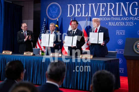 ny261025124414 From right, President Donald Trump, Cambodian Prime Minister Hun Manet, Thailand's Prime Minister Anutin Charnvirakul and, Malaysian Prime Minister Anwar Ibrahim, pose with their documents during a signing of a ceasefire agreement between Thailand and Cambodia at the ASEAN Summit in Kuala Lumpur, Malaysia, on Sunday, Oct. 26, 2025. (Haiyun Jiang/The New York Times/Fotoarena)