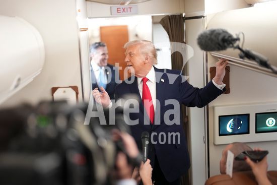 ny091225201613 President Donald Trump speaks to reporters aboard Air Force One as he travels to Pennsylvania, on Tuesday, Dec. 9, 2025. Trump was traveling to the Mount Airy Casino Resort in Mount Pocono, Pa., to deliver remarks on the economy. (Doug Mills/The New York Times/Fotoarena)