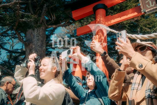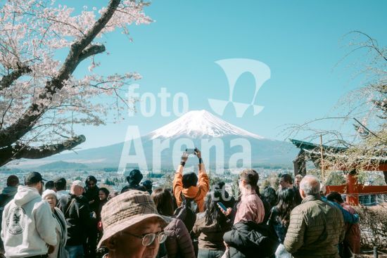 ny260426140011 Tourists watch Mount Fuji in Fujiyoshida, Japan, April 8, 2026. In the foothills of Mount Fuji, the fight is on against unruly tourists; huge crowds of visitors during cherry blossom season have put a picturesque Japanese town on edge, and some residents are trying to take charge. (Kentaro Takahashi/The New York Times/Fotoarena)