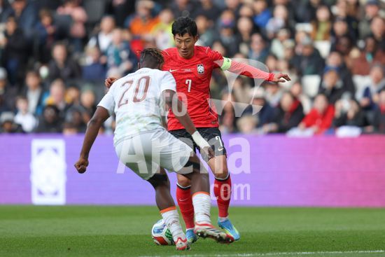 2913617 MILTON KEYNES, INGLATERRA, 28 DE MARCO: Son Heung Min nao consegue marcar contra Yahia Fofana, da Costa do Marfim, durante o amistoso internacional entre Coreia do Sul e Costa do Marfim no Estadio MK, em 28 de marco de 2026, em Milton Keynes, Inglaterra (Foto de Alexander Canillas/Sports Press Photo). (Alexander Canillas/SPP)