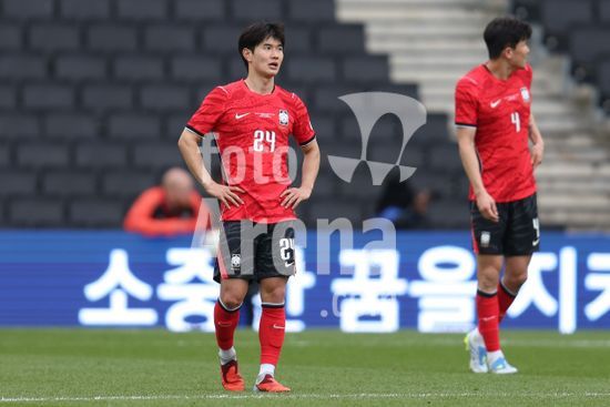 2913629 MILTON KEYNES, INGLATERRA, 28 DE MARCO: Kim Jingyu, da Coreia do Sul, demonstra desanimo apos sofrer mais um gol durante o amistoso internacional entre Coreia do Sul e Costa do Marfim, no Estadio MK, em 28 de marco de 2026, em Milton Keynes, Inglaterra (Foto de Alexander Canillas/Sports Press Photo). (Alexander Canillas/SPP)