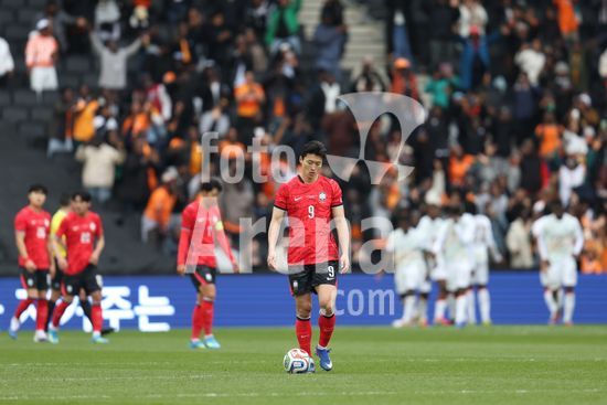 2913691 MILTON KEYNES, INGLATERRA, 28 DE MARCO: Cho Guesung, da Coreia do Sul, conduz a bola em direcao ao centro do campo apos sofrer um gol durante o amistoso internacional entre Coreia do Sul e Costa do Marfim no Estadio MK, em 28 de marco de 2026, em Milton Keynes, Inglaterra (Foto de Alexander Canillas/Sports Press Photo). (Alexander Canillas/SPP)
