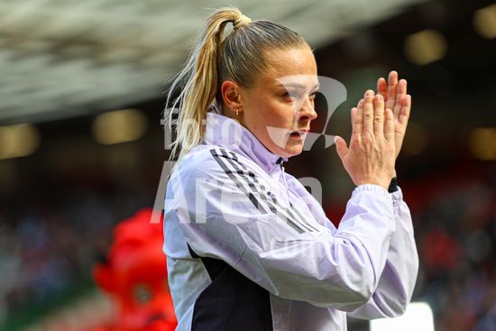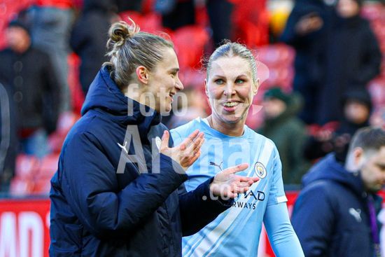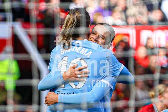 2913608 MANCHESTER, INGLATERRA - 28 de marco: Rebecca Knaak, do Manchester City, comemora antes de seu gol ser anulado durante a partida da Barclays Women's Super League entre Manchester United e Manchester City, no Old Trafford, em 28 de marco, em Manchester, Inglaterra. (Natalie Mincher/SPP)