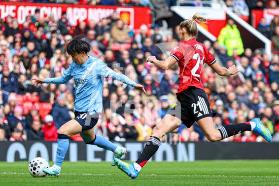 2913606 MANCHESTER, INGLATERRA - 28 de marco: Yui Hasegawa, do Manchester City, com a bola durante a partida da Barclays Women's Super League entre Manchester United e Manchester City, no Old Trafford, em 28 de marco, em Manchester, Inglaterra. (Natalie Mincher/SPP)