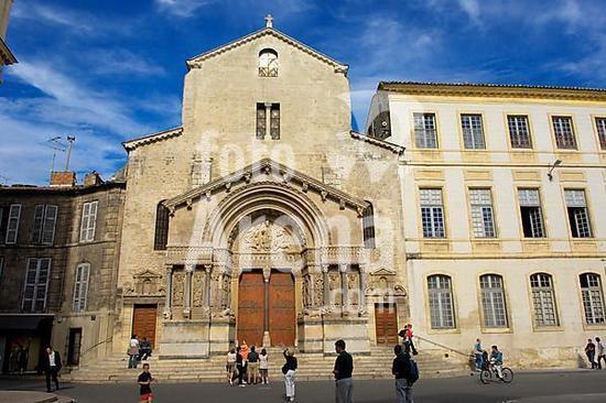 ibljmc01347671 Saint Trophime cathedral at Place de la Republique, Arles, Bouches du Rhone, Provence, France, Europe