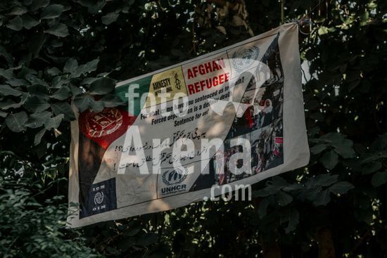 **EMBARGO: No electronic distribution, Web posting or street sales before SUNDAY, 12:01 A.M. ET, NOV. 30, 2025. No exceptions for any reasons. EMBARGO set by source.** A banner reads ?for what crime have you sentenced us to death? Forced deportation is a death sentence for us,? as it hangs between trees in Argentina Park, where Afghan refugees were living and sheltering after being evicted, in Islamabad, Pakistan, Nov. 15, 2025. Labeling Afghans a national security threat, Pakistan has forced out more than 700,000 this year, depriving them of a haven from Afghanistan?s turmoil. (Asim Hafeez/The New York Times/Fotoarena)