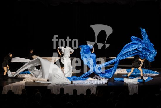 **EMBARGO: No electronic distribution, Web posting or street sales before FRIDAY, 5:01 A.M. ET, JAN. 23, 2025. No exceptions for any reasons. EMBARGO set by source.** Dancers perform ?Inhale Delirium Exhale,? a show by Belgian theater artist Miet Warlop, in Ghent, Belgium, Jan. 16, 2026. Warlop used unused material from the French luxury brand Hermès, which arrived in 35-inch rolls. (Ilvy Njiokiktjien/The New York Times/Fotoarena)
