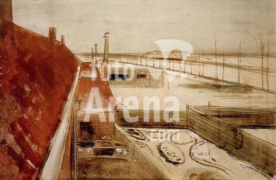 akg865643 Gogh, Vincent van; 1853-1890. "Blick aus dem Atelier des Künstlers in Den Haag", 1882/1883. Gouache, Aquarell, Kreide, Tusche, 40 x 60 cm. Sammlung Jan Krugier und Marie-Anne Krugier-Poniatowski. Inv.Nr. JK 4829.