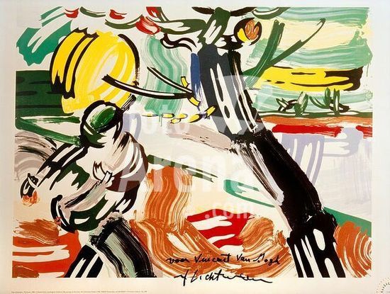 akg950395 Lichtenstein, Roy 1923-1997. "Van Gogh Poster", 1990. Plakat aus einer 20teiligen Serie von Künstlerplakaten zum 100. Todestag von Vincent van Gogh. Offsetlithographie, 59,4 x 84 cm. Reproduktion der Grafik 'The Sower', 1985, von Roy Lichtenstein. Museum: Museum für Kunst und Gewerbe., HAMBURG.