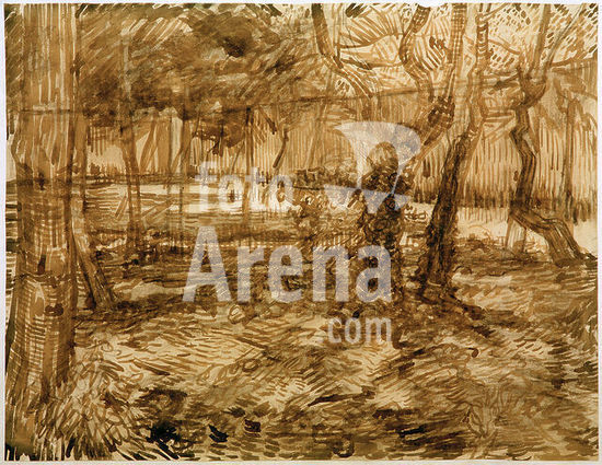 akg335716 Gogh, Vincent van 1853-1890. "Bäume im Park", Mai / Juli 1889. (Im Park der Heilanstalt Saint-Paulde-Mausole in Saint-Rémy-de-Provence). Bleistift, schwarze Kreide und Pinsel in Braun, 46,1 × 59,8 cm. Otterlo, Rijksmuseum Kröller-Müller. Museum: Otterlo, Rijksmuseum Kröller-Müller.