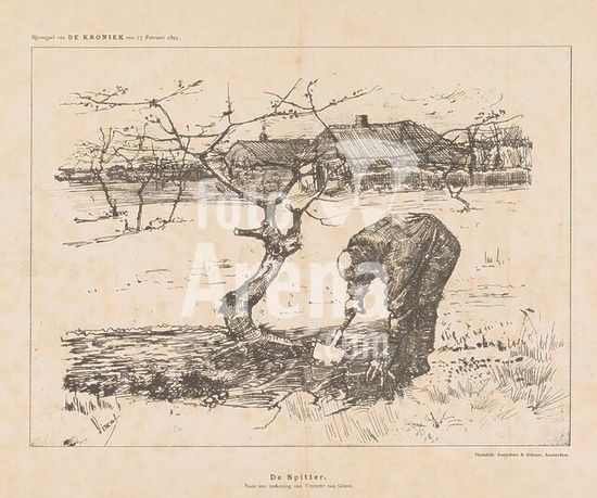 alb15526909 Amsterdam, Gogh, Vincent van, De Spitter, Print with title and caption, supplement to 'De Kroniek'. Signed and dated., print, cartoon, prints, height 60.5 cm, width 40.2 cm, Dutch, 1853-03-30 - 1890-07-29, designer, 1895-02-17 - 1895-02-17, fourth quarter 19th century, paper, lithography (technique).