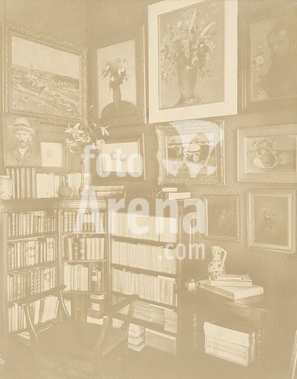 alb15584442 Interior of Stadhouderskade 56, the home of Andries Bonger in Amsterdam, with paintings by Vincent van Gogh, Émile Bernard and Odilon Redon on the wall, photograph, W.J.G. van Meurs, Amsterdam, 1904, baryta paper, gelatin silver print, height, 288 mm × width, 227 mm.