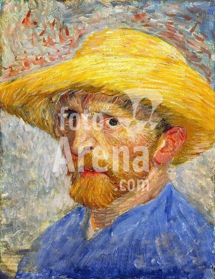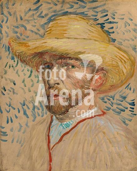 alb3617015 Self-Portrait with a Straw Hat (obverse: The Potato Peeler). Artist: Vincent van Gogh (Dutch, Zundert 1853-1890 Auvers-sur-Oise). Dimensions: 16 x 12 1/2 in. (40.6 x 31.8 cm). Date: 1887.Van Gogh produced more than twenty self-portraits during his Parisian sojourn (1886-88). Short of funds but determined nevertheless to hone his skills as a figure painter, he became his own best sitter: "I purposely bought a good enough mirror to work from myself, for want of a model." This picture, which shows the artist's awareness of Neo-Impressionist technique and color theory, is one of several that are painted on the reverse of an earlier peasant study. Museum: Metropolitan Museum of Art, New York, USA.