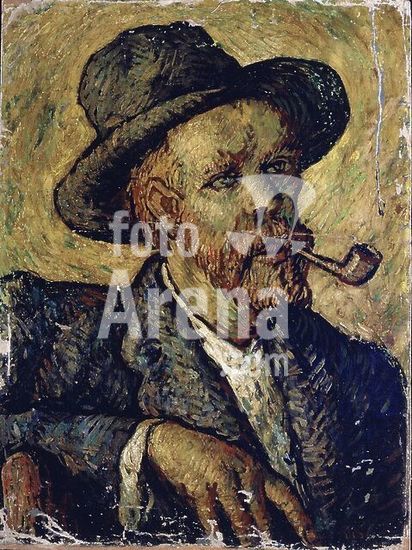 orz146646 AUTORRETRATO CON PIPA - OLEO/LIENZO. Author: VICENT VAN GOGH (1853-1890) ATRIBUIDO. Location: PRIVATE COLLECTION. MADRID. SPAIN. VINCENT VAN GOGH.