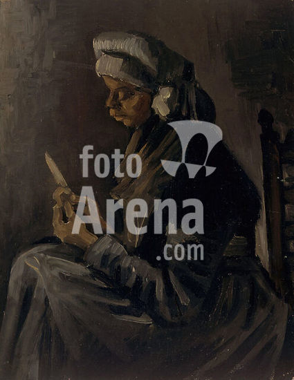alb3631459 Peasant Woman Cooking by a Fireplace. Artist: Vincent van Gogh (Dutch, Zundert 1853-1890 Auvers-sur-Oise). Dimensions: 17 3/8 x 15 in. (44.1 x 38.1 cm). Date: 1885.This work was made in Nuenen in late spring 1885, just after Van Gogh completed The Potato Eaters (Van Gogh Museum, Amsterdam), in the same dark hues that reminded the artist of "green soap" or "a really dusty potato, unpeeled of course." Van Gogh was "convinced that in the long run it produces better results to paint [peasants] in their coarseness than to introduce conventional sweetness... If a peasant painting smells of bacon, smoke, potato steam--fine--that's not unhealthy--if a stable smells of manure--very well, that's what a stable's for.". Museum: Metropolitan Museum of Art, New York, USA.