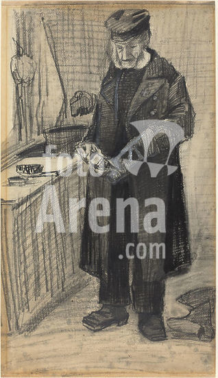 alb3716401 Man Polishing a Boot. Dated: 1882. Dimensions: overall: 48.9 x 28 cm (19 1/4 x 11 in.). Medium: black chalk, graphite, and gray wash, heightened with white on wove paper. Museum: National Gallery of Art, Washington DC. Author: VINCENT VAN GOGH.