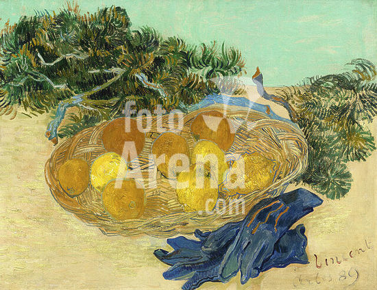 alb3722532 Still Life of Oranges and Lemons with Blue Gloves. Dated: 1889. Dimensions: overall: 48 × 62 cm (18 7/8 × 24 7/16 in.). Medium: oil on canvas. Museum: National Gallery of Art, Washington DC. Author: VINCENT VAN GOGH.