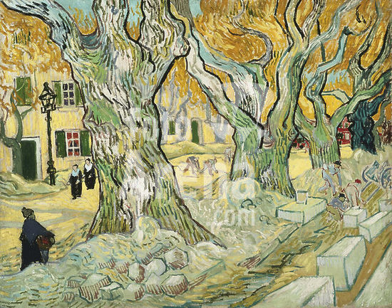 alb3899590 The Road Menders. Date/Period: 1889. Painting. Oil on canvas. Height: 29 mm (1.14 in); Width: 36.50 mm (1.43 in). Author: VINCENT VAN GOGH.