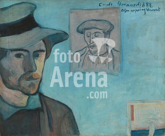 alb4099601 Self-Portrait with Portrait of Gauguin. Date: 1888, Pont-Aven. Dimensions: 46 cm x 56 cm, 60.5 cm x 69.5 cm. Museum: Van Gogh Museum, Amsterdam. Author: EMILE BERNARD.