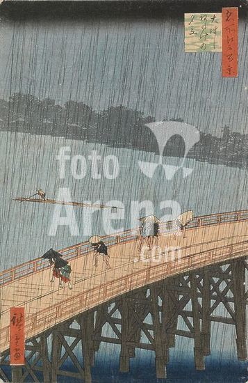 alb4099744 Sudden Evening Shower on the Great Bridge near Atake, from the series One Hundred Views of Famous Places in Edo. Date: ninth month 1857. Dimensions: 22.6 cm x 33.8 cm, 34 cm x 22 cm. Museum: Van Gogh Museum, Amsterdam. Author: UTAGAWA HIROSHIGE.