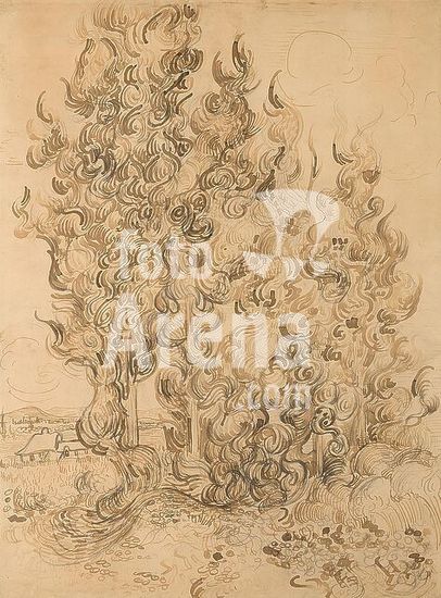 alb4159435 Cypresses. Vincent van Gogh; Dutch, 1853-1890. Date: 1889. Dimensions: 625 x 464 mm. Pen and reed pen and brown inks, with graphite, on buff wove paper, laid down on card. Origin: Netherlands. Museum: The Chicago Art Institute, USA.