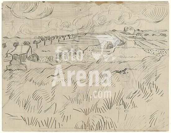 orz227303 CULTIVOS DE CEREAL - DIBUJO DE UNA CARTA DE VINCENT VAN GOGH A SU HERMANO THEO VAN GOGH - AUVERS-SUR-OISE, 24 DE JULIO DE 1890 - CARTA 908 (651): P8. Author: VINCENT VAN GOGH. Location: MUSEO VAN GOGH. Amsterdam. HOLANDA.
