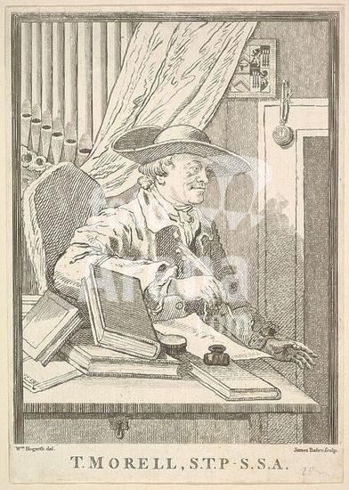 alb3628040 Thomas Morell, S.T.P.- S.S.A. Artist: After William Hogarth (British, London 1697-1764 London). Dimensions: sheet: 8 1/4 x 5 7/8 in. (21 x 14.9 cm). Engraver: James Basire, the elder (British, London 1730-1802 London). Sitter: Thomas Morell (British, 1730-1784). Date: February 1762. Museum: Metropolitan Museum of Art, New York, USA.