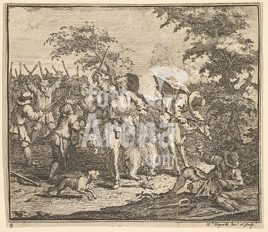 alb3657802 The Encounter with Talgol and Magnano (Seventeen Small Illustrations for Samuel Butler's Hudibras, no. 3). Artist: William Hogarth (British, London 1697-1764 London). Author: Illustrates Samuel Butler (British, baptized Strensham, Worcestershire 1613-1680 Covent Garden). Dimensions: sheet: 4 7/16 x 4 15/16 in. (11.2 x 12.6 cm) (trimmed). Date: 1721-26. Museum: Metropolitan Museum of Art, New York, USA.