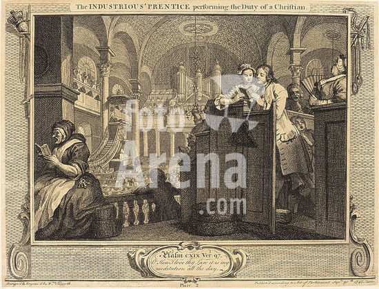 alb3705460 The Industrious 'Prentice performing the Dutyof a Christian. Dated: 1747. Medium: etching and engraving. Museum: National Gallery of Art, Washington DC. Author: William Hogarth.