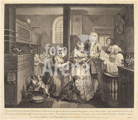 alb3647492 The Industrious 'Prentice Out of his Time and Married to his Master's Daughter (Industry and Idleness, plate 6). Artist: William Hogarth (British, London 1697-1764 London). Dimensions: plate: 10 3/8 x 13 9/16 in. (26.4 x 34.4 cm)sheet: 10 9/16 x 13 7/8 in. (26.8 x 35.2 cm). Date: September 30, 1747. Museum: Metropolitan Museum of Art, New York, USA.