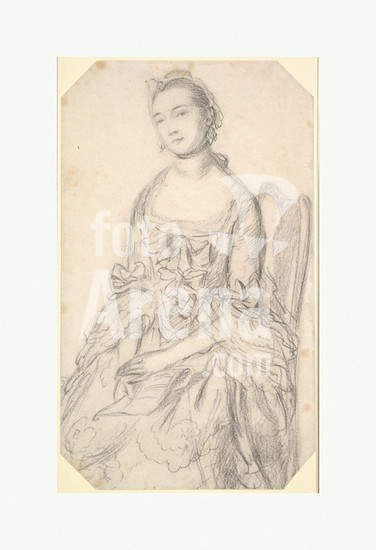 alb3519674 Portrait of a Young Woman Seated, ca. 1760, Black chalk with touches of red wash, Sheet (corners trimmed): 11 3/4 x 7 in. (29.8 x 17.8 cm), Drawings, Thomas Gainsborough (British, Sudbury 1727–1788 London), In 1760 Gainsborough moved to Bath, England’s leading spa city, where he made this delicate chalk drawing in preparation for a lifesize oil portrait of Ann Ford. Ford was an amateur singer and musician whose bravura private performances were taking the town by storm, and Gainsborough intended his painting to establish his national reputation.