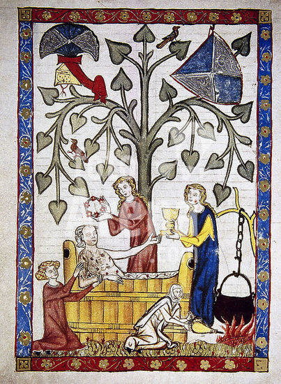 alb1465903 Ladies preparing the bath of poet Jakob von Warte. Codex Manesse (ca.1300) by Rudiger Manesse and his son Johannes. University of Heidelberg. Library. Germany.