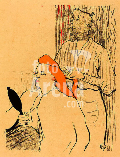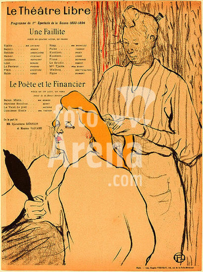 alb3714488 The Hairdresser - Program for the Theatre-Libre (Le coiffeur - Programme du Théatre-Libre). Dated: 1893. Medium: lithograph in green-black, yellow, and red. Museum: National Gallery of Art, Washington DC. Author: Henri de Toulouse-Lautrec.