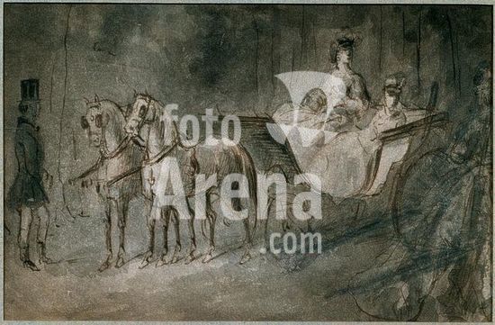 akg965215 Guys, Constantin 1802-1892. "Au Bois Boulogne", undat. Tusche auf Papier, 11 x 17 cm. Museum: Private Collection., Privatsammlung.