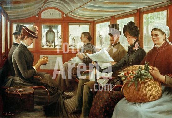 akg997966 Verkehr / Pferdewagen: Pferdeomnibus.-"Dans l'Omnibus" (Im Omnibus).-Gemälde, 1890, von Maurice Delondre. Öl auf Leinwand, 64 x 92 cm. Museum: Musée Carnavalet., Paris.
