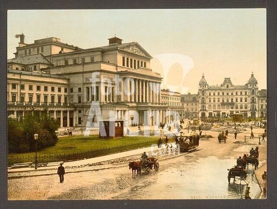 akg1147658 Warschau (Polen), Großes Theater-Teatr Wielki (Erbaut 1825-1833; Arch.: Antonio Corazzi).-Außenansicht.-Photochrom, um 1890/1900 (Detroit Publishing Co.).