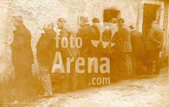 akg442845 USA / Worldwide Economic Crisis. Unemployed men waiting in front of a soup kitchen in Chicago which was opened by Al Capone eröffnet. Photo, February 1931. Colour added digitally.