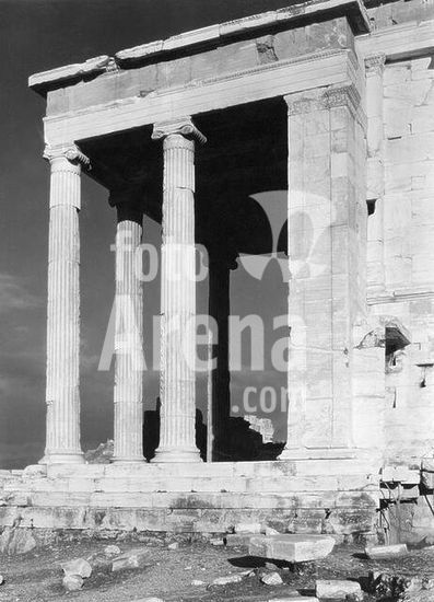 akg1042571 Athen (Griechenland), Erechtheion auf der Akropolis (erbaut 421-406 v.Chr).-Teilansicht: Nordwestecke der Nordhalle mit attischionischen Kapitellen.-Foto, 1928 (Walter Hege).