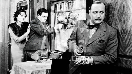 alb19570330 LINDEN TRAVERS, BASIL RADFORD and NAUNTON WAYNE in ALARMA EN EL EXPRESO (1938) -Original title: THE LADY VANISHES-, directed by ALFRED HITCHCOCK. English title: THE LADY VANISHES. Portuguese title: DESAPARECIDA!.