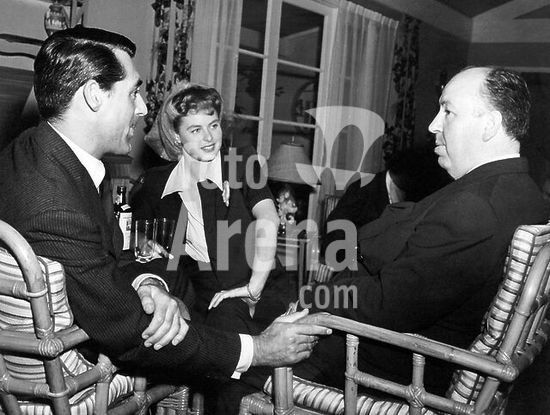 alb245922 CARY GRANT, INGRID BERGMAN and ALFRED HITCHCOCK in TUYO ES MI CORAZÓN (1946) -Original title: NOTORIOUS-, directed by ALFRED HITCHCOCK. English title: NOTORIOUS. Portuguese title: DIFAMAÇÃO.