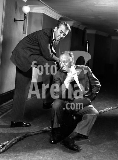 alb19571168 JAMES STEWART and ALFRED HITCHCOCK in EL HOMBRE QUE SABÍA DEMASIADO (1956) -Original title: THE MAN WHO KNEW TOO MUCH-, directed by ALFRED HITCHCOCK. English title: THE MAN WHO KNEW TOO MUCH. Portuguese title: O HOMEM QUE SABIA DEMAIS.
