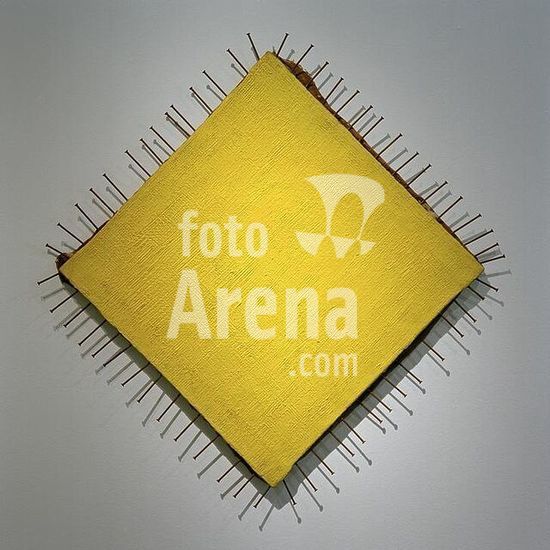 akg1619499 Uecker, Günther; geb. 1930. "Das gelbe Bild", 1958. Nägel und Öl auf Leinwand, 87 x 85 cm. Privatsammlung.
