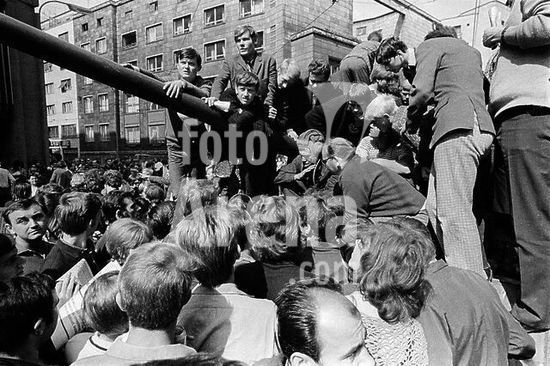 akg1039967 Soviet invasion of the Czechoslovak Socialist Republic (Czechoslovakia), 20/21 August 1968 (passive resistance by the Slovak people).-Demonstrators on a tank.-Photo, Bratislava, 21 August 1968.