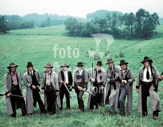alb290120 KEITH CARRADINE, ROBERT CARRADINE, DAVID CARRADINE, RANDY QUAID, STACY KEACH and JAMES KEACH in FORAJIDOS DE LEYENDA (1980) -Original title: THE LONG RIDERS-, directed by WALTER HILL. English title: THE LONG RIDERS. Portuguese title: CAVALGADA INFERNAL.