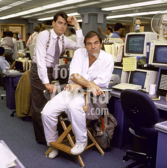 alb20379522 OLIVER STONE and CHARLIE SHEEN in WALL STREET (1987), directed by OLIVER STONE. English title: WALL STREET. Portuguese title: WALL STREET - PODER E COBIÇA.