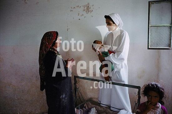 akg1329208 Völkerkunde / Palästina.-Israel, im Dorf Quissan, auf palästinensischem Territorium: "Ce centre social de village offre une assistance aux futures mamans" (Die Sozialstation des Dorfes bietet zukünftigen Müttern Unterstützung an).-Foto, 1999. Aus einer Serie " Femmes Eternelles".