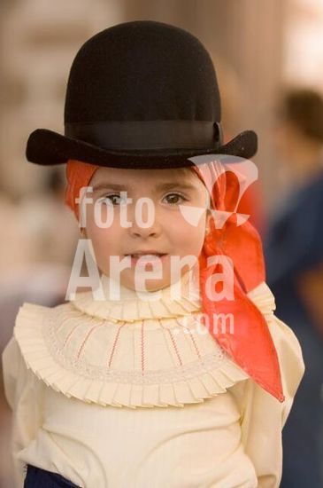 akg289000 Volkskunde:. Spanien. "Fallas" (alljährliches Straßenfest in Valencia vom 15.-19. März, bei dem in der Abschlußnacht 350 Karikaturpuppen aus Pappmaché verbrannt werden): Kinder in traditioneller Tracht. Foto, 1960. Copyright: For editorial use only.